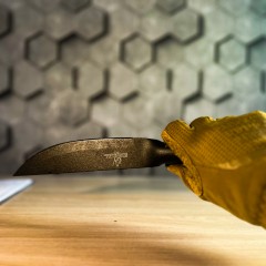 Клинок данного ножа изготовлен из SK5 — это японская инструментальная сталь. Так как содержание цементинов в данном материале повышено, её стойкость к истираю достигает идеального баланса между превосходными характеристиками прочности и внушительной степенью незатупляемости режущей кромки. SK5 выдержала испытание времени и в течение долгого времени используется во многих странах.